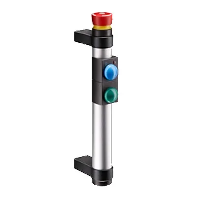 Diese Multifunktionsgriffe können auch zusätzlich mit einem Not-Aus Taster wahlweise ausgerüstet werden und erfüllen die EN ISO 13850.