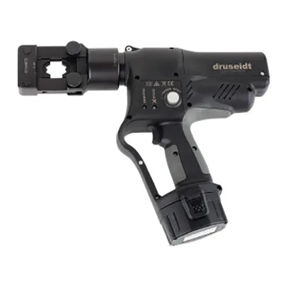 Ergänzend zu den verschiedenen einfachen Handwerkzeugen, die manuell betätigt mit Hebelübersetzung arbeiten, bietet Druseidt auch eine Vielzahl von kraftunterstützten Pressgeräten an. Derartige Geräte bieten erhebliche Vorteile beim Verarbeiten grösserer Querschnitte und regelmässiger oder serienmässiger Anwendung. Durch ihre relativ kleinen, kompakten Bauformen ist auch ein Arbeiten an schwer zugänglichen Stellen oder unter beengten Platzverhältnissen möglich.